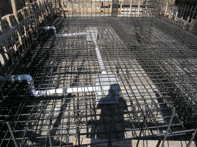 Η είσοδος του ραδονίου μέσα στο σπίτι από το έδαφος μπορεί να γίνει μέσω ρωγών στα δάπεδα και στα στοιχεία από σκυρόδεμα, μέσω των σωλήνων αποχέτευσης των δαπέδων, μέσω αντλιών φρεατίων αποστράγγισης, μέσω των κατασκευαστικών αρμών και μικροσκοπικών ρωγμών στους τοίχους. Τα επίπεδα του ραδονίου είναι γενικά υψηλότερα στις βάσεις των σπιτιών και στα δωμάτια των ισογείων τα οποία είναι σε επαφή με το έδαφος.